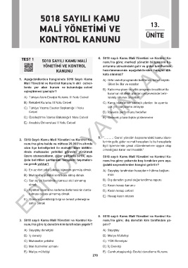 TEST 1 5018 SAYILI KAMU MALİ 4. 5018 sayılı Kamu Mali Yönetimi ve Kontrol Ka-