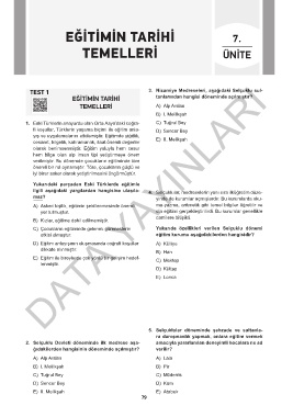 TEST 1 3. Nizamiye Medreseleri, aşağıdaki Selçuklu sul-