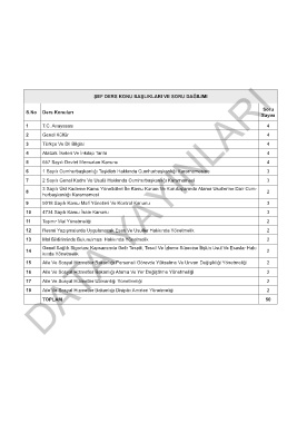 ŞEF DERS KONU BAŞLIKLARI VE SORU DAĞILIMI