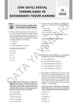 TEST 1 3. 3294 sayılı Sosyal Yardımlaşma ve Dayanışma Teş-