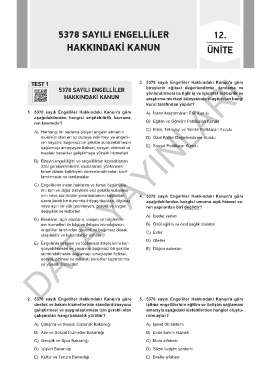 TEST 1 3. 5378 sayılı Engelliler Hakkındaki Kanun’a göre