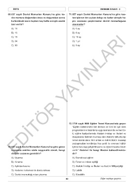 69. 657 sayılı Devlet Memurları Kanunu’na göre ka- 71. 657 sayılı Devlet Memurları Kanunu’na göre kas-