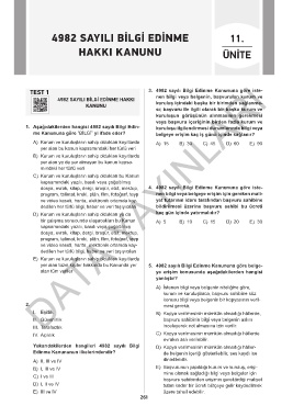 TEST 1 3. 4982 sayılı Bilgi Edinme Kanununa göre iste-
