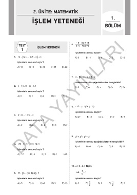 1. 12- é ë 12 : 4 - 2.(5 - 2)ù û + 3 A) 0 B) -1 C) 1 D) 2 E) -2