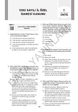 TEST 1 3. 5302 sayılı İl Özel İdaresi Kanununa göre il hal-