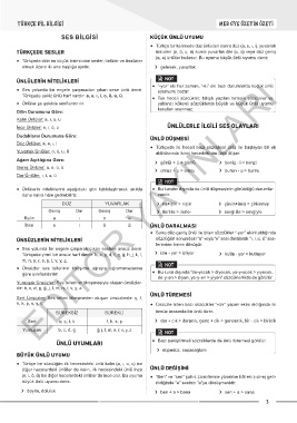 SES BİLGİSİ KÜÇÜK ÜNLÜ UYUMU