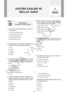 TEST 1 5. Balkan Savaşları sonucunda yapılan antlaşma-