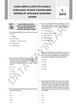 TEST 1 KAMU GÖREVLİLERİ ETİK 4. Kamu Görevlileri Etik Kurulu üyelerinin görevi