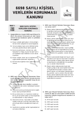 TEST 1 6698 SAYILI KİŞİSEL 3. 6698 sayılı Kişisel Verilerin Korunması Kanu-
