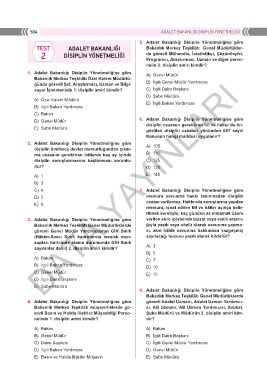 2. Adalet Bakanlığı Disiplin Yönetmeliğine göre A) 105