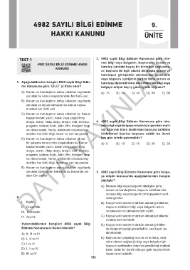 TEST 1 3. 4982 sayılı Bilgi Edinme Kanununa göre iste-