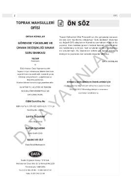TOPRAK MAHSULLERİ ÖN SÖZ