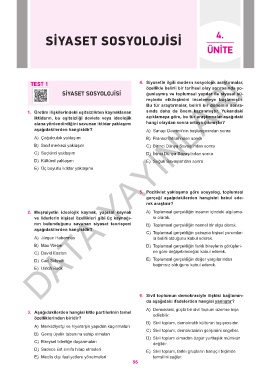 TEST 1 4. Siyasetle ilgili modern sosyolojik araştırmalar,