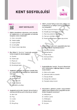 2. Max Weber’in “ideal kent” tanımında aşağıdaki- B) Kültürel farklılık