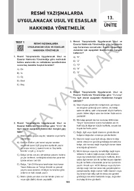 TEST 1 3. Resmî Yazışmalarda Uygulanacak Usul ve