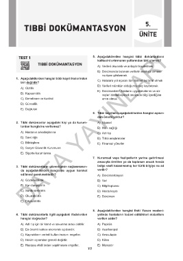 TEST 1 5. Aşağıdakilerden hangisi tıbbi dokümanların