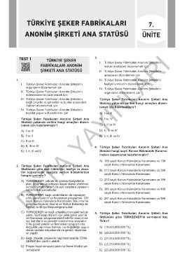 D) II, III ve IV 4. Türkiye Şeker Fabrikaları Anonim Şirketi Ana