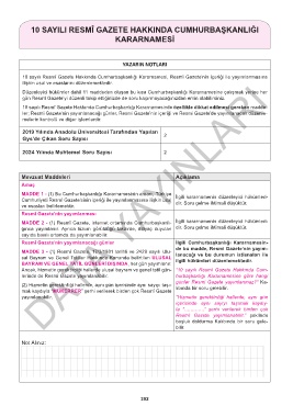 10 sayılı Resmî Gazete Hakkında Cumhurbaşkanlığı Kararnamesinde özellikle dikkat edilmesi gereken madde-