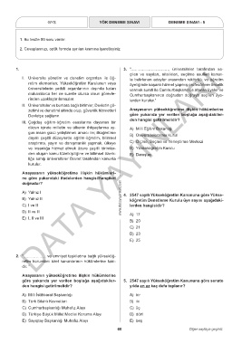 Page 7 - YÖK Üst Kuruluşları ile YÖK Personeli GYS Sezon Finali 5 Deneme Sınavı