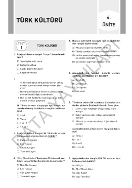 4. "Altın Elbiseli Adam" buluntusu Türklere ait aşa- 8. Aşağıdakilerden hangisi Kök Türklere ait hey-