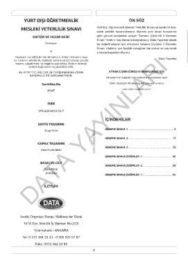 Sınavı” kitabını hazırlamış bulunmaktayız. Data Yayınları olarak