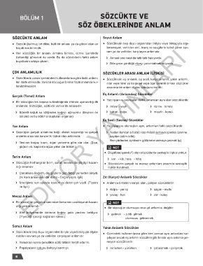 • Sözcüklerin cümle içerisindeki kullanımlarına göre farklı anlam- • Sözcüklerin eş anlamlı, eş sesli, karşıt anlamlı, yakın anlamlı,