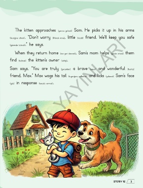 friend, Max.” Max wags his tail (kuyruğunu sallamak) and licks (yalamak) Sam’s face