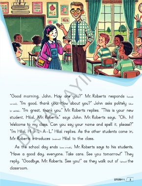 Mr. Roberts introduces (tanıtmak) Hilal to the class.