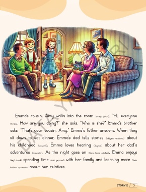 sit down to eat dinner, Emma’s dad tells stories (hikâyeler anlatmak) about