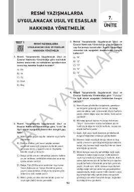TEST 1 3. Resmî Yazışmalarda Uygulanacak Usul ve