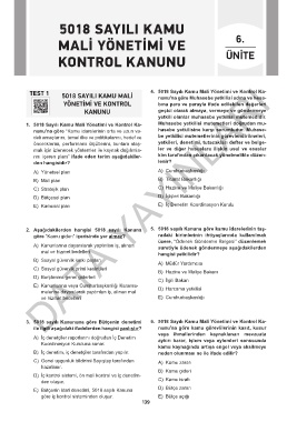 TEST 1 5018 SAYILI KAMU MALİ 4. 5018 Sayılı Kamu Mali Yönetimi ve Kontrol Ka-