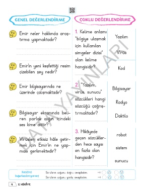 Virüsleri etkisiz hâle getir- geçen sözcükler-