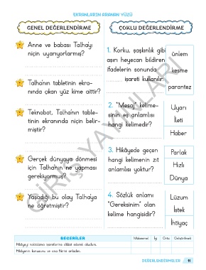 Talha’nın tabletinin ekra- işareti kullanılır. parantez