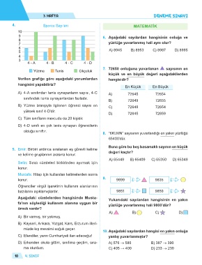 9 6. Aşağıdaki sayılardan hangisinin onluğa ve