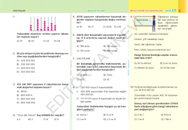 C) 203 003 002 Editör Yayınevi karıdaki sayı için 1 rakamının basamak de- Editör Yayınevi C) Ahmet ile Sami D) Ali ile İrem