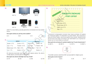 Buna göre Selma en çok kaç ürün alabilir? Editör Yayınevi Yukarıda bir kırtasiyedeki ürünlerin fiyat listesi verilmiştir. Bir günde