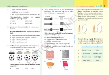 IŞIĞIN MADDEYLE KARŞILAŞMASI Kazanım Soruları Beceri Temelli Yeni Nesil Sorular test 19 185