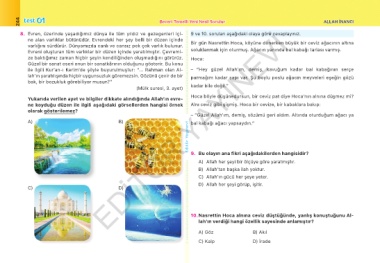 244 test 01 Beceri Temelli Yeni Nesil Sorular ALLAH İNANCI
