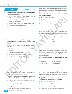 1. TEST 3. Ünite 4. Kur’an-ı Kerim, başka bir ilahi kitap indirilmeyeceği için