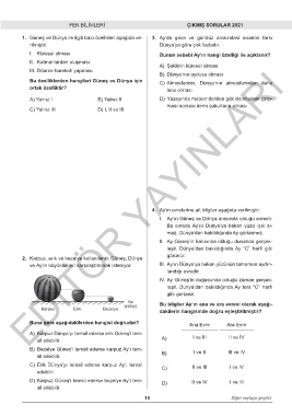 ve Ay’ın büyüklükleri karşılaştırılmak isteniyor. III. Ay’ın Dünya’ya bakan yüzünün tamamen aydın-