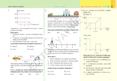 SABİT SÜRATLİ HAREKET Kazanım Soruları Beceri Temelli Yeni Nesil Sorular test 10 185