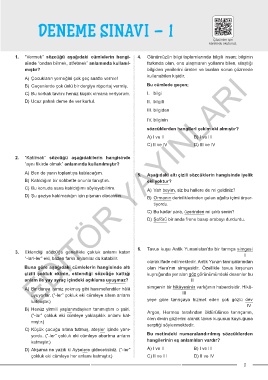 Page 3 - 6. Sınıf Türkçe 20 Sarmal Föy Deneme Sınavı