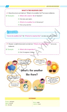 F Hava durumunu sormak için “What is the weather like?”sorusunu kullanırız.