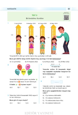 3 Rakamları farklı 4 basamaklı 3A82 sayısı 6 A) 2’ye kalansız bölünebilir.