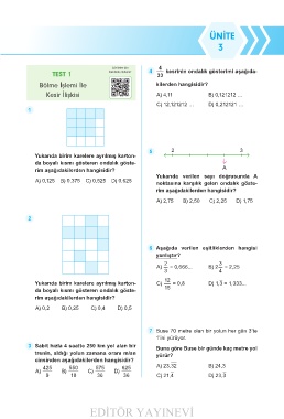 Yukarıda birim karelere ayrılmış karton- C) = 0,8 D) 1,3 = 1,333...