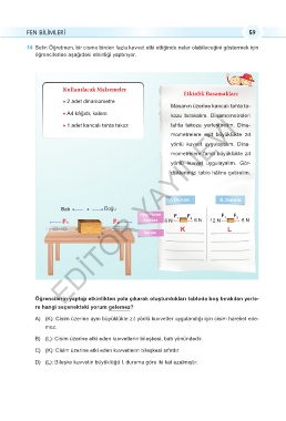 14 Selin Öğretmen, bir cisme birden fazla kuvvet etki ettiğinde neler olabileceğini göstermek için