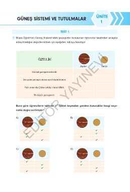 Buna göre öğrencilerin tabloda “✔” işareti koymaları gereken kutucuklar hangi seçe-