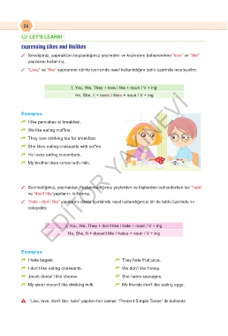 “Like, love, don’t like, hate” yapıları her zaman “Present Simple Tense” ile kullanılır.