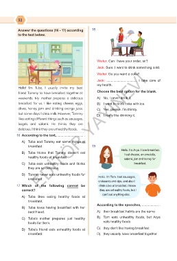olives, honey, jam and drinking orange juice, C) Yes, please. I’m thirsty.