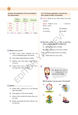 3 Which one is true? B) hates getting on the roller coaster